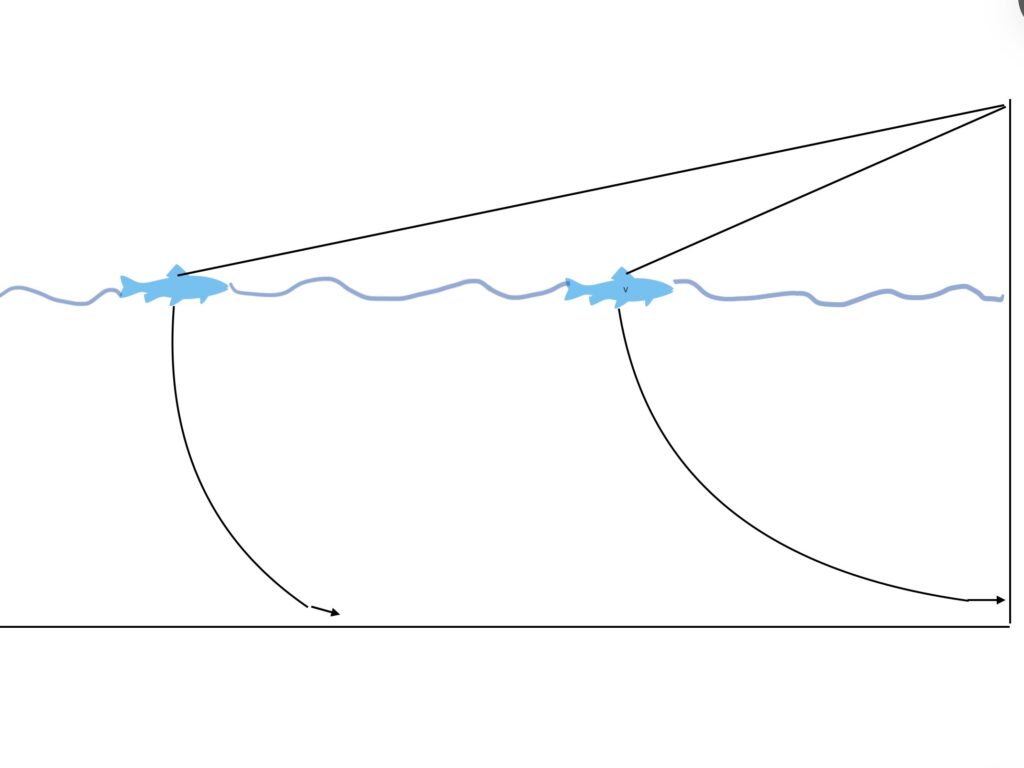 はじめの仮説では、飛距離が近いほどエギが沈下する時のカーブ(孤)が急なので沈下速度は遅くなるのでは?と考えました。